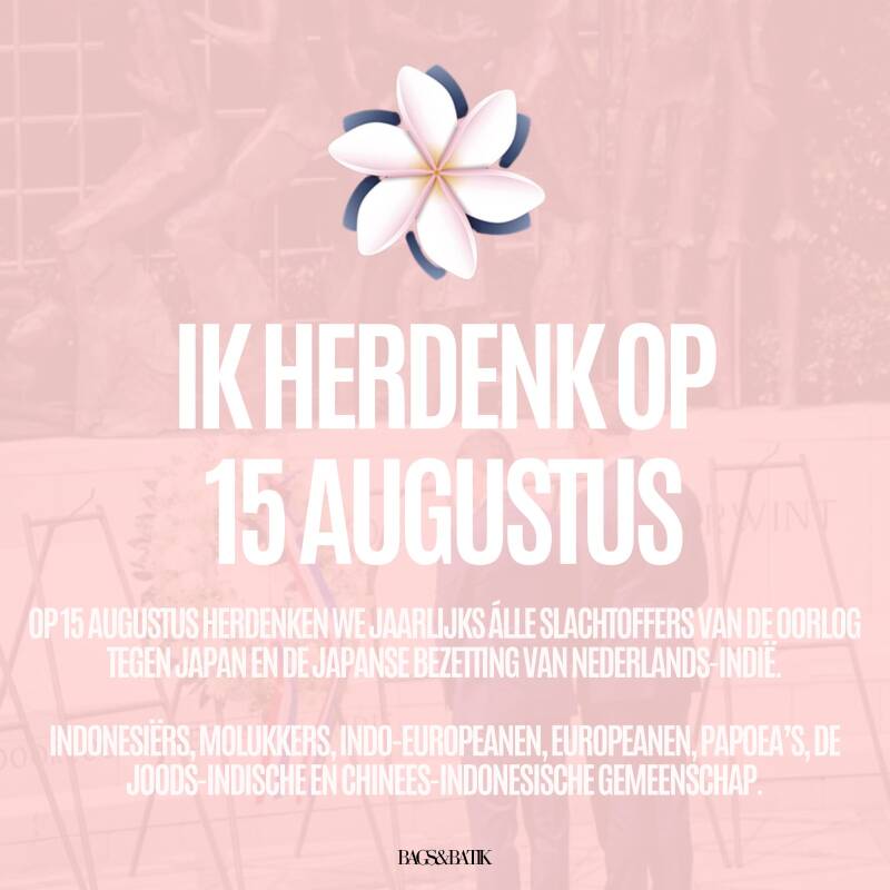 Op 15 augustus herdenken we jaarlijks álle slachtoffers van de oorlog tegen Japan en de Japanse bezetting van Nederlands-Indië. Honderdduizend kinderen en volwassen burgers werden geïnterneerd in concentratiekampen, honderdduizenden werden buiten de kampen aan hun lot overgelaten. Zo’n 200.000 zogenoemde ‘troostmeisjes’ werden uitgebuit en werden gedwongen de Japanse militairen ‘’troost’’ te bieden (prostitueren).