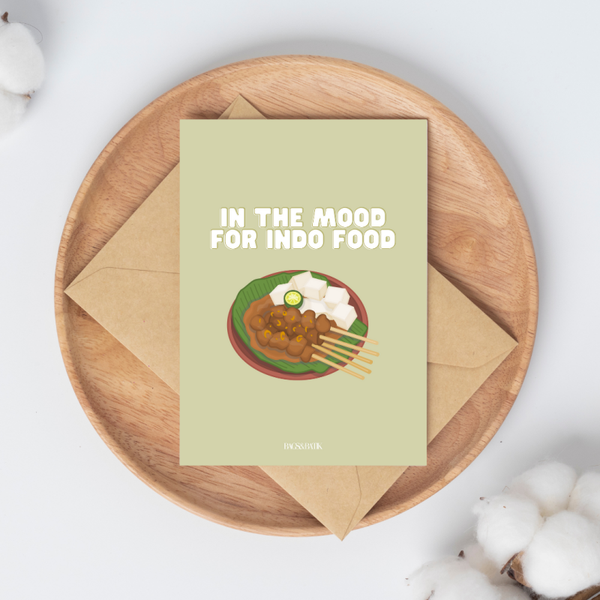 Zou je graag een speciaal kaartje willen sturen naar je beste vriend, familielid of kennis? "In the Mood for Indo Food" Niet alleen een leuke boodschap om als kaart te versturen, maar ook om in te lijsten en aan de muur te hangen!