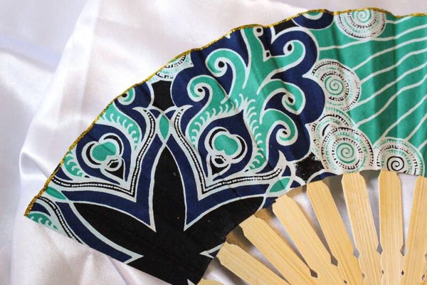 Batik waaier, handgemaakt in Indonesië met batik. Een unieke batik waaier die perfect is voor het warme weer.