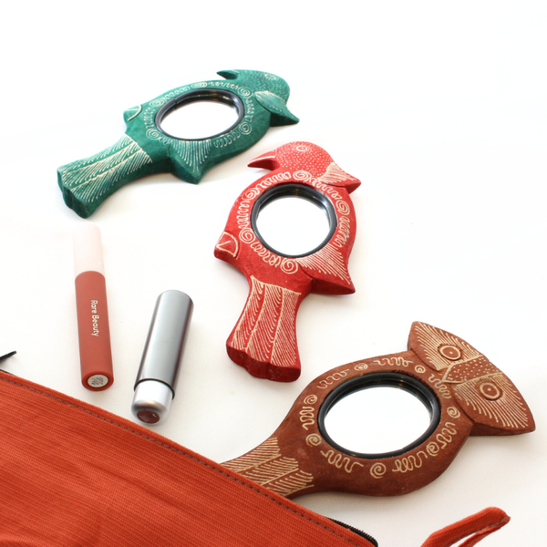 Dit batik spiegeltje is compact en draagbaar, waardoor het perfect is om in je tas te stoppen voor snelle retouches onderweg. Het kan ook dienen als een prachtig decoratief stuk in je huis. De unieke combinatie van hout en batik maakt het een veelzijdig accessoire dat past bij verschillende interieurstijlen.