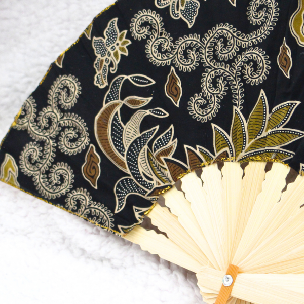 Batik waaier, handgemaakt in Indonesië met batik. Een unieke batik waaier die perfect is voor het warme weer.