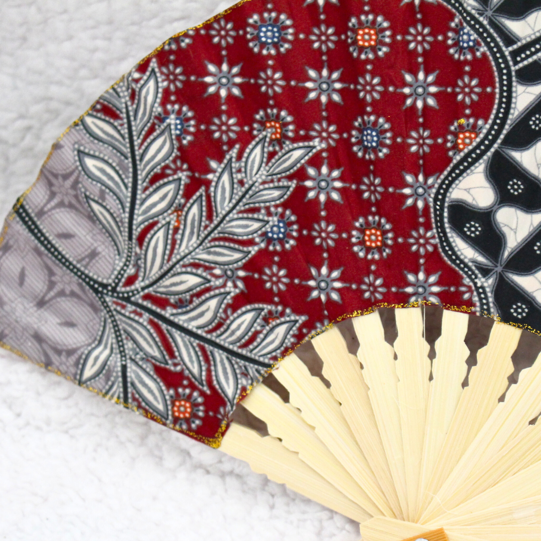 Batik waaier, handgemaakt in Indonesië met batik. Een unieke batik waaier die perfect is voor het warme weer.