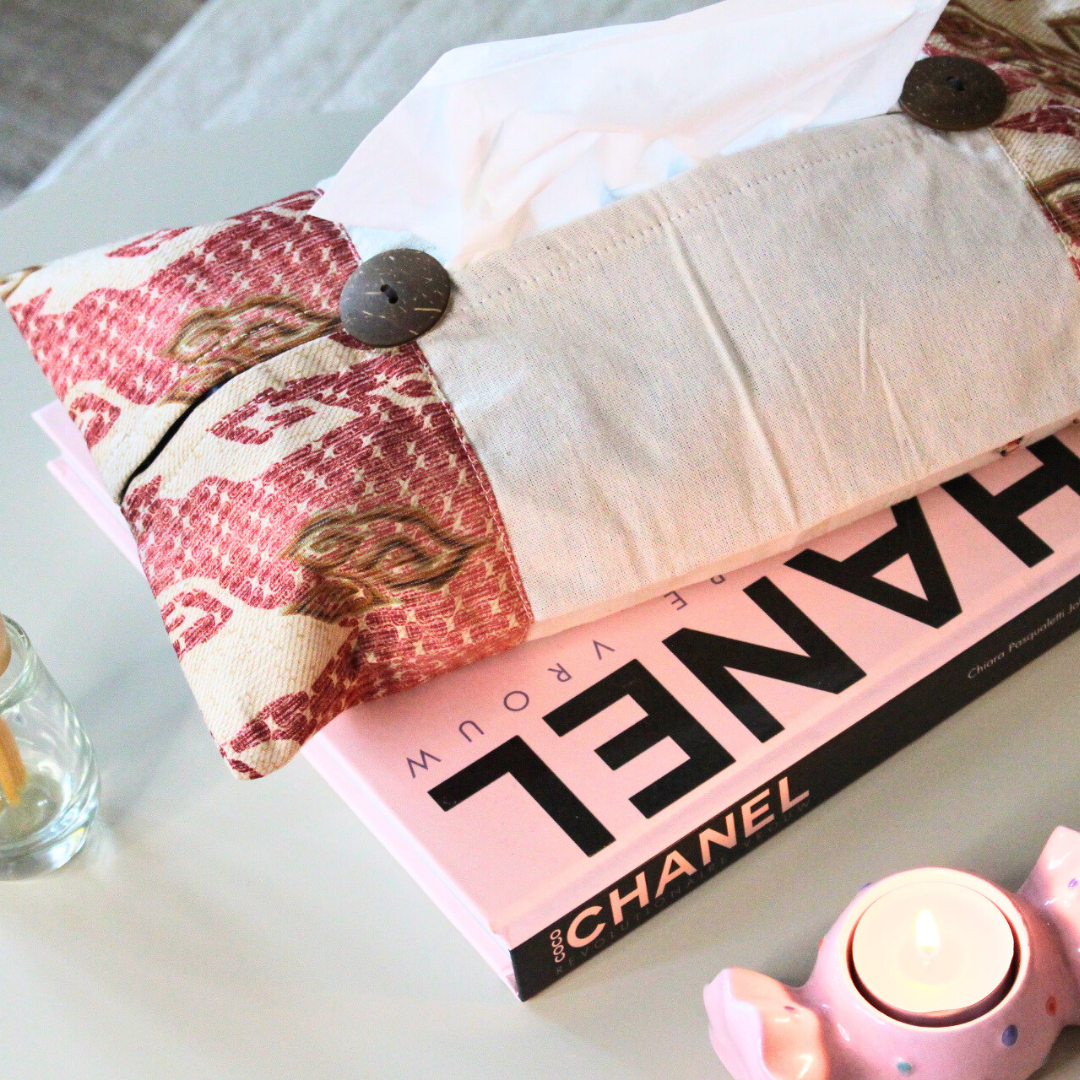 Batik is een eeuwenoude kunstvorm waarbij was op stof wordt aangebracht en vervolgens geverfd, wat resulteert in unieke patronen en kleuren. Onze batik tissuehouder zorgt voor een praktisch en decoratief item voor je interieur.