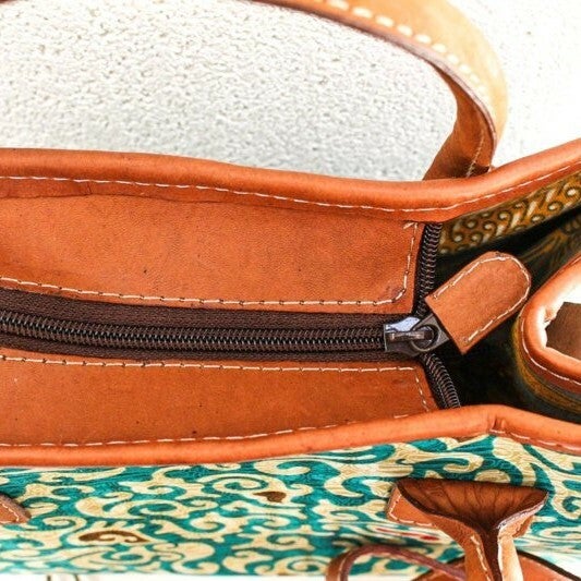 Een prachtige kleurrijke batik tas gemaakt in Yogyakarta - Indonesië. De tas is gemaakt van exotisch Java batik en zacht geitenleer. Het mooie aan de tas is de unieke print die normaal gesproken niet voorkomt. De binnenkant heeft een geweldige voering van batik. De tas heeft een praktisch formaat en je kunt er enorm veel in kwijt! De tas wordt geleverd met een 120 cm verstelbare schouderriem die je er ook af kunt halen!