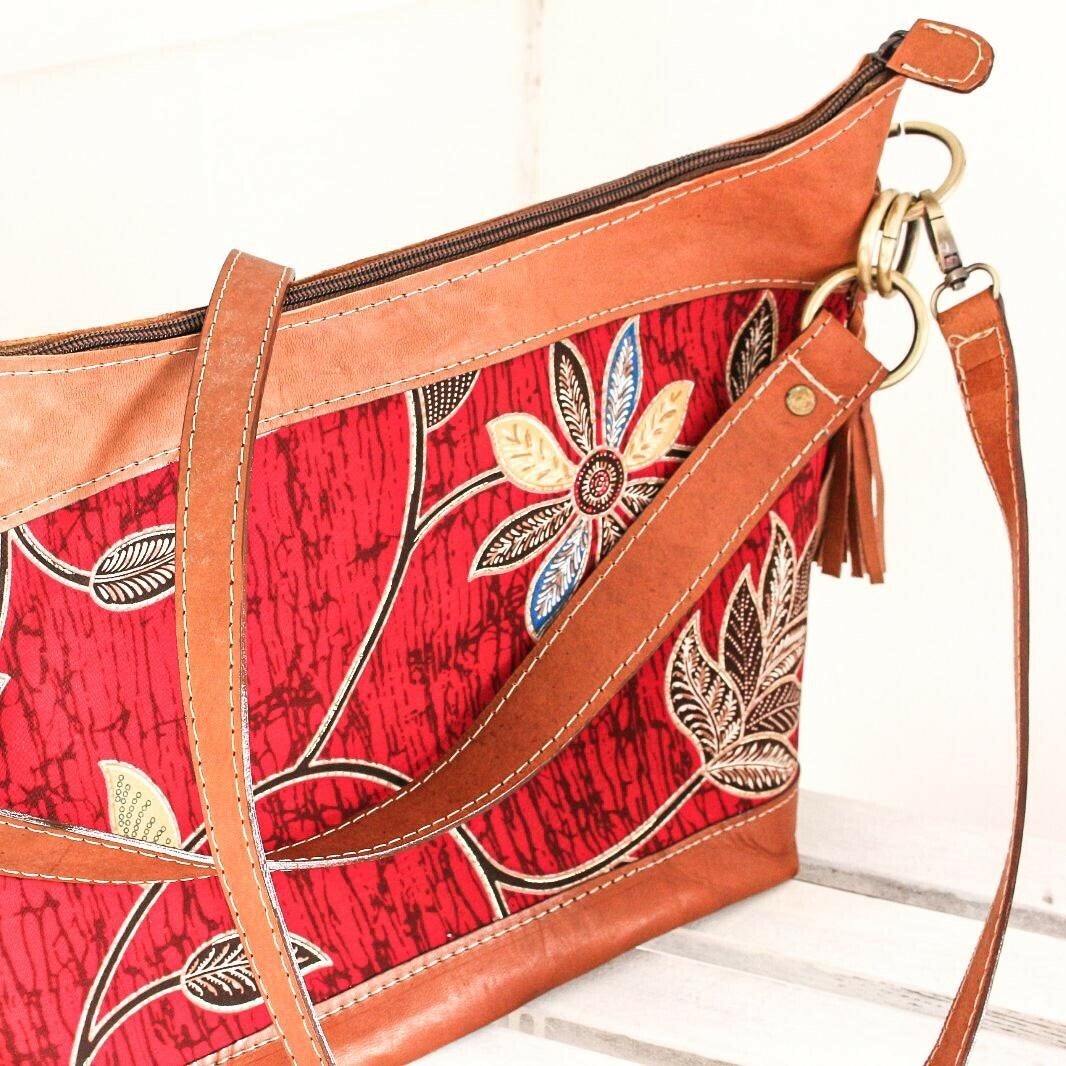 Batik Schoudertas Bandung Leer - Donkerroze / Rood