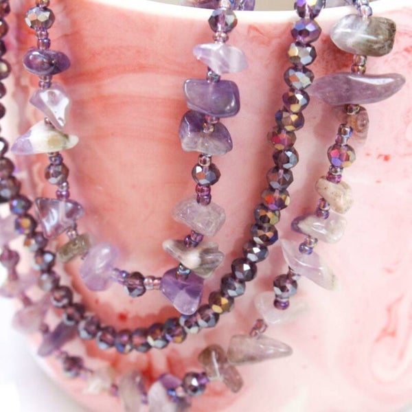 Een prachtige 3-delige ketting met edelstenen van de amethist. Een veel voorkomende en bekende steen is de amethist. De paarse edelsteen die al duizenden jaren wordt gebruikt.