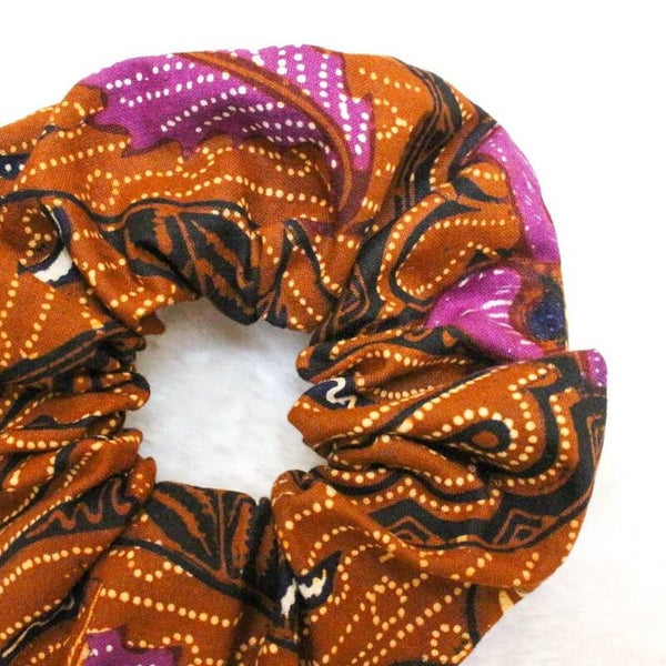 Unieke handgemaakte scrunchie die te gebruiken is als haarelastiek, met een originele en bijzondere batikstof die handgemaakt is in Indonesië.