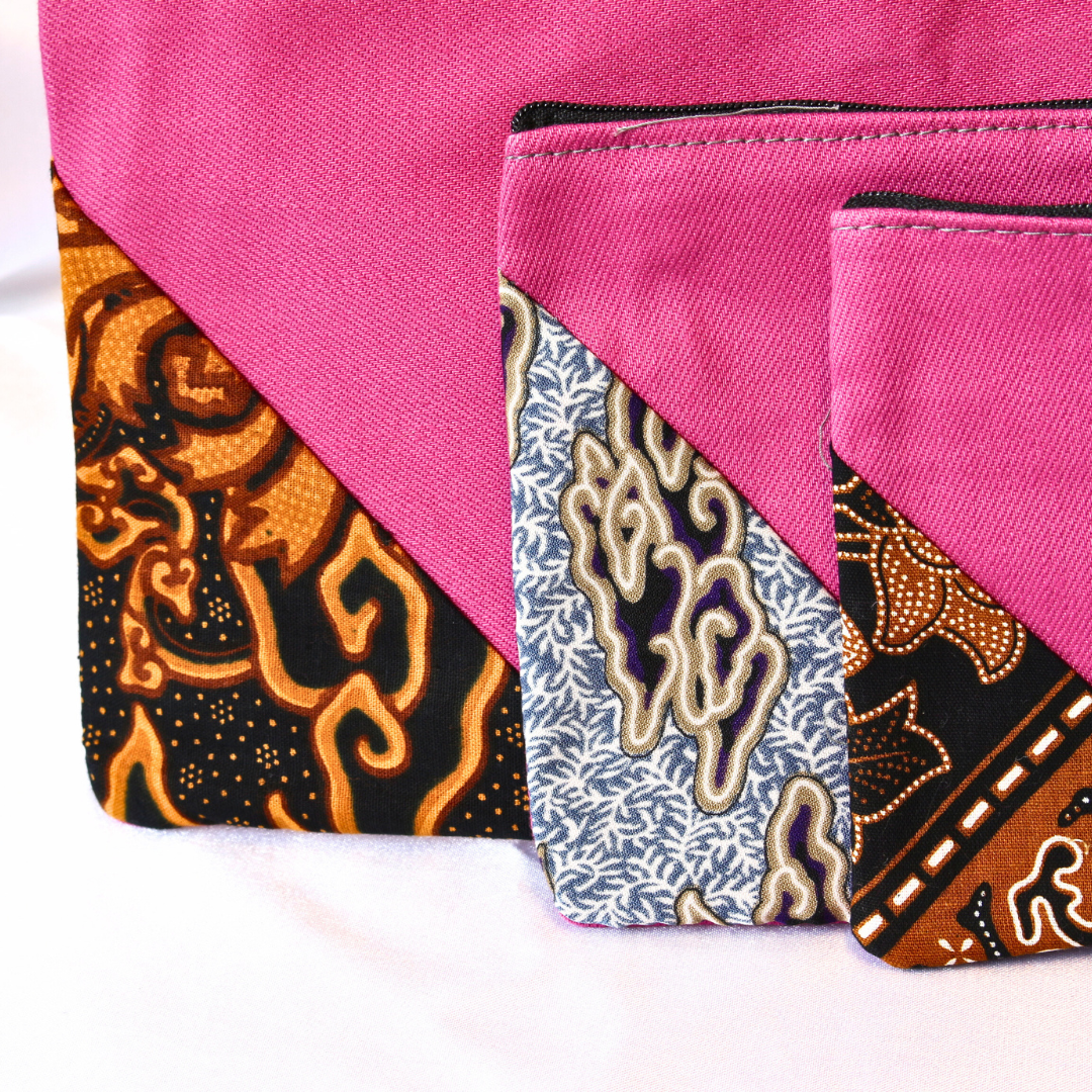 De perfecte make-up tasjes om al je make-up in kwijt te kunnen. De tasjes bestaan uit 3 formaten. De make-up tasjes zijn handgemaakt in Indonesië van gerecyclede stof. Je kan de tasjes ook gebruiken als portemonnees of voor op reis.