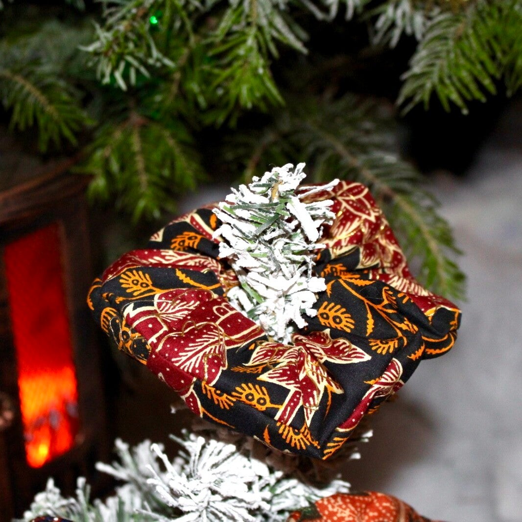 Unieke handgemaakte scrunchie die te gebruiken is als haarelastiek, met een originele en bijzondere batikstof die handgemaakt is in Indonesië.